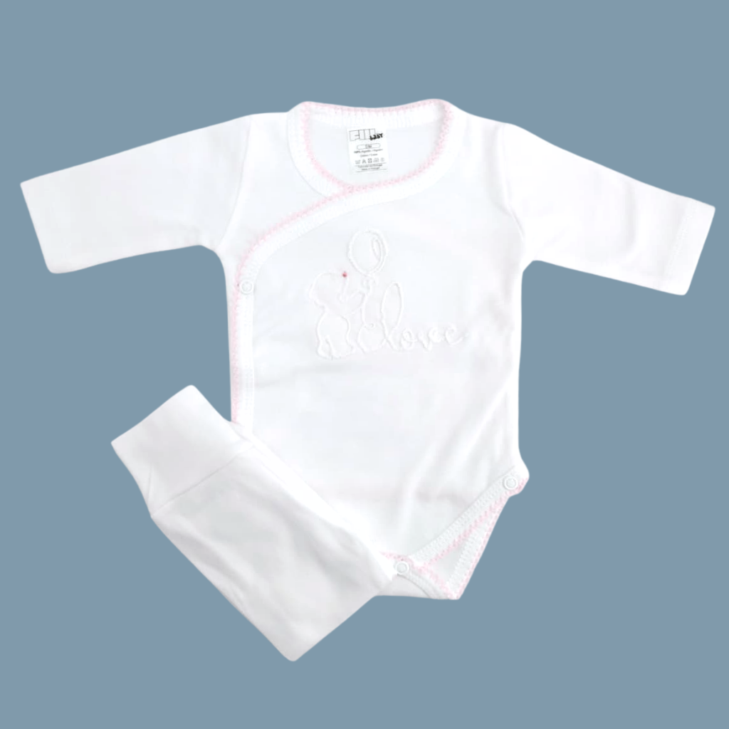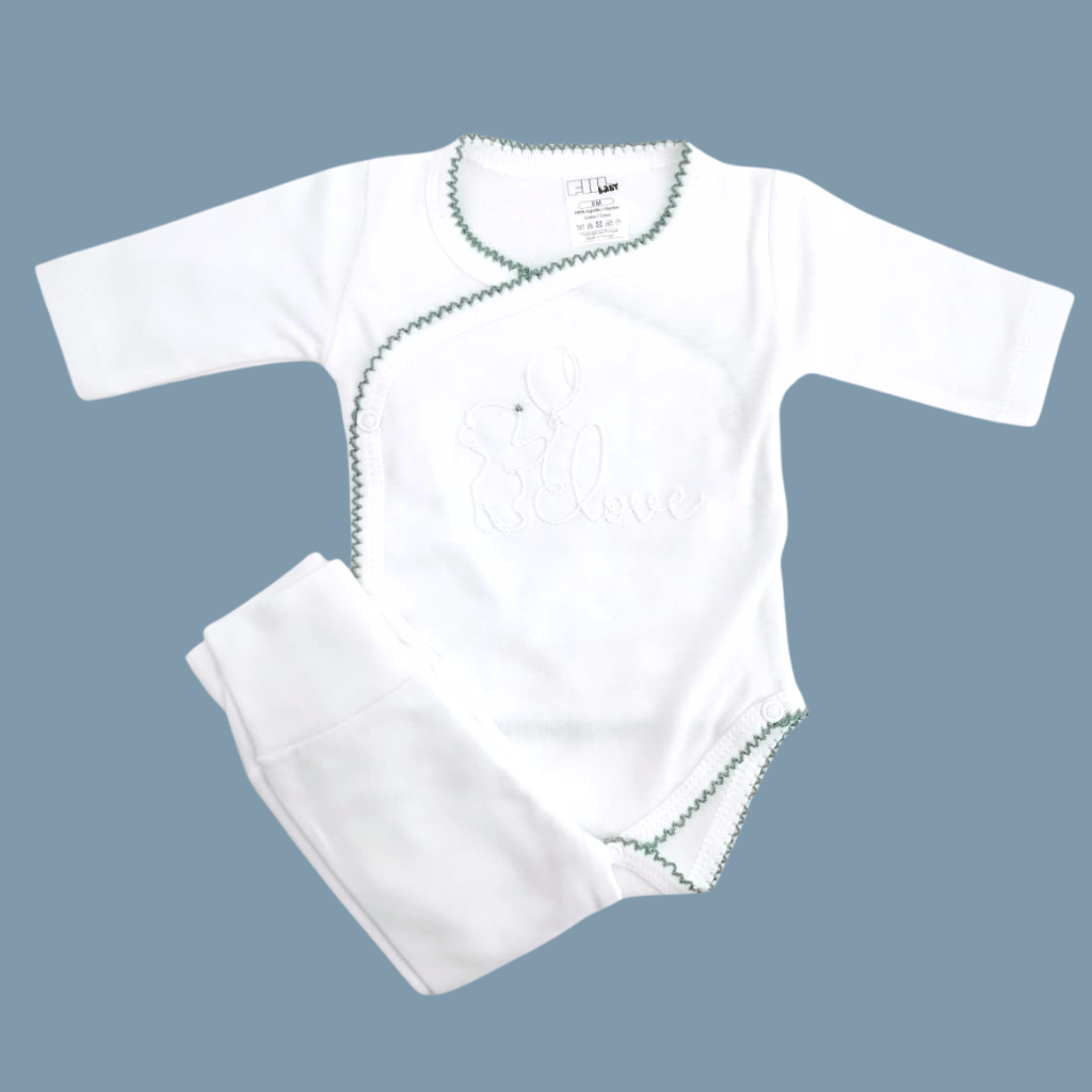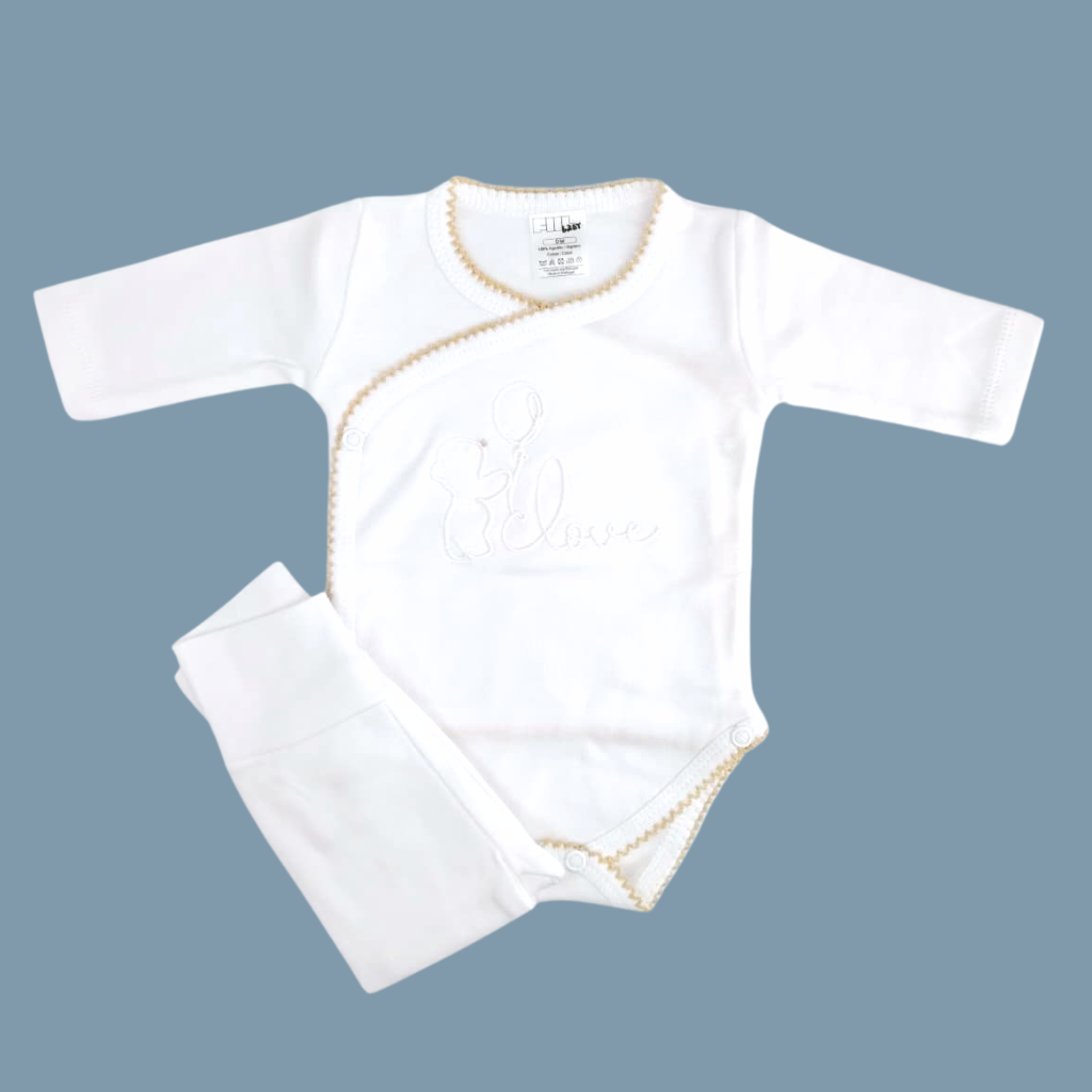 Body de doble botonadura con oso globo bordado, combinado con medias lisas.