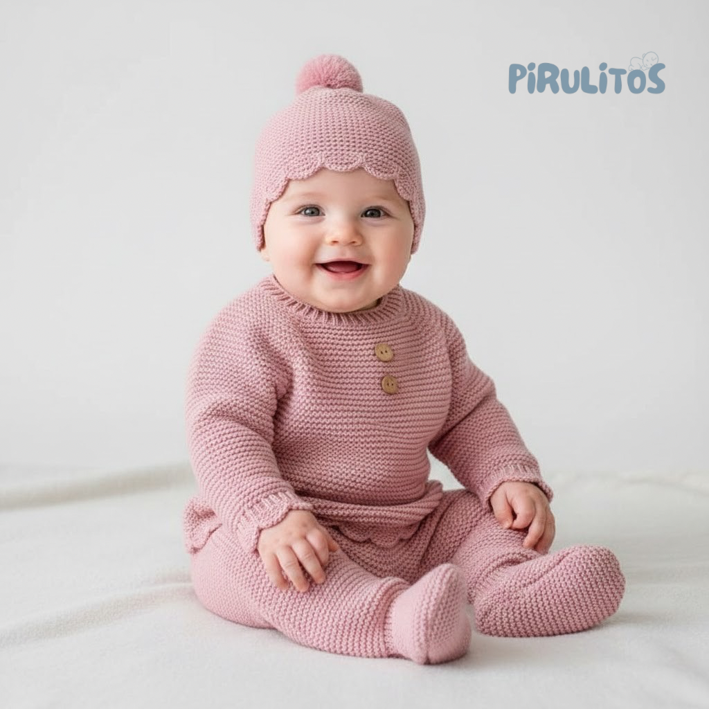 Conjunto de punto para bebé de 3 piezas con botones