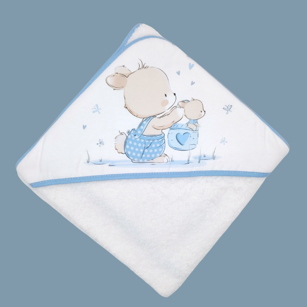 Toalla de rizo con apliques estampados.