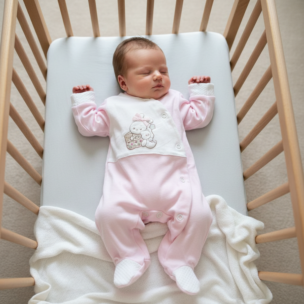 Babygrow em algodão macio, ideal para o conforto diário do bebé.