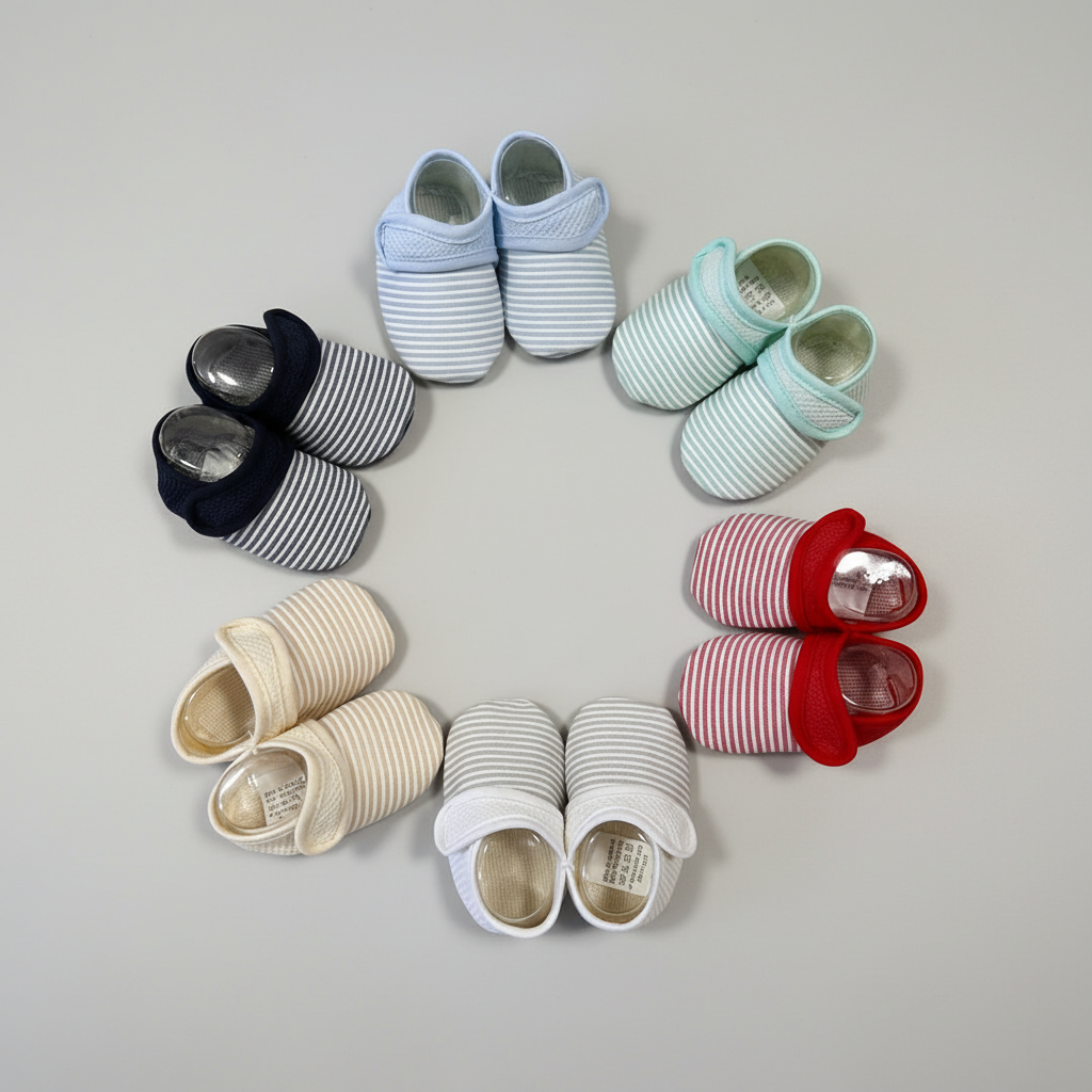Carapins Bebé Piquet Riscas e Tira Com VelcroCarapins Bebé Piquet Riscas e Tira Com Velcro