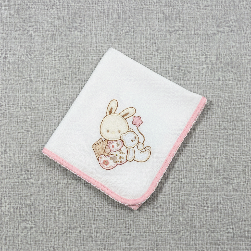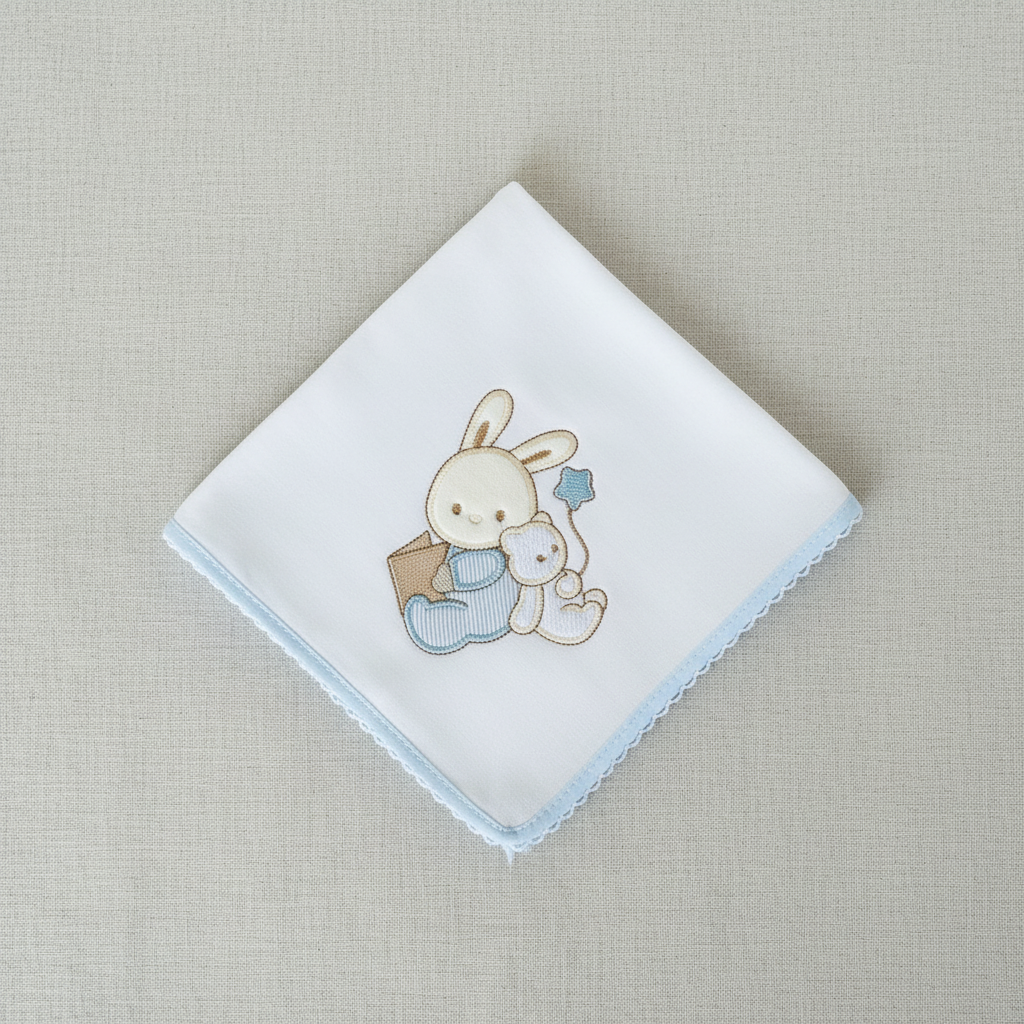 Fralda bebé com bordado Histórias do Coelhinho.
