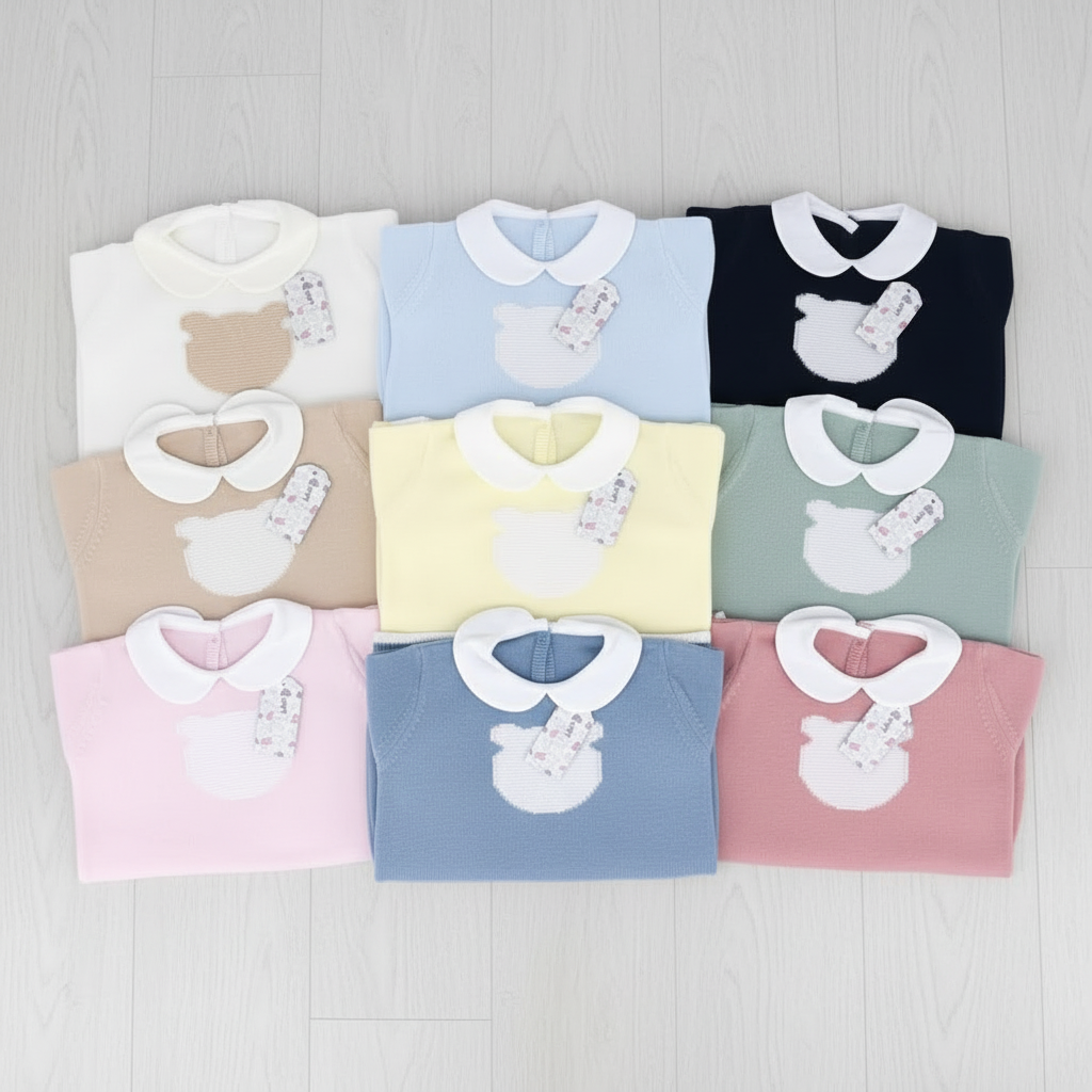 O destaque fica por conta da aplicação frontal em formato de ursinho, que traz um charme especial e um visual lúdico e encantador. O acabamento em contraste nas mangas e na barra complementa o design, deixando a peça ainda mais sofisticada e harmoniosa.