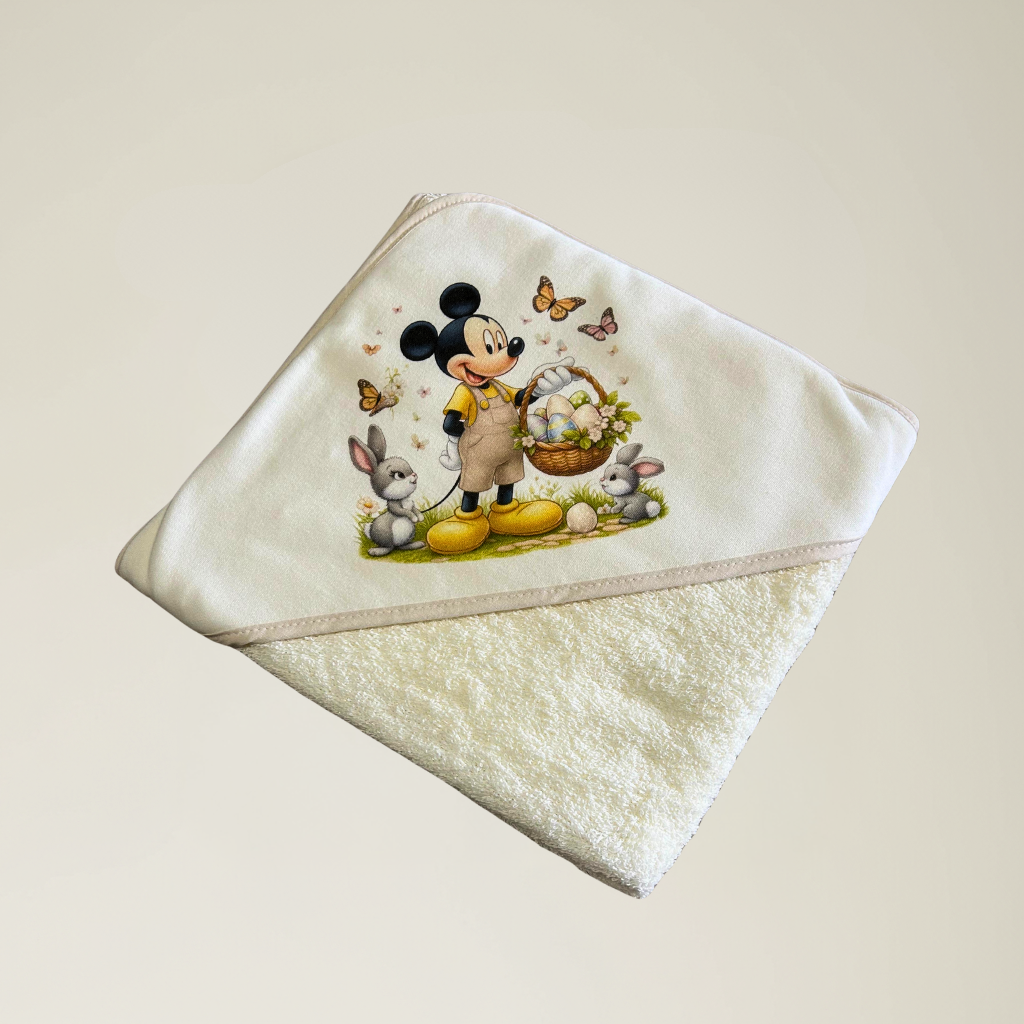 Toalha de banho bebé em algodão Mickey Cestinha.